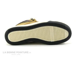 La partie haute de la chaussure se démarque avec des parties marron foncé.