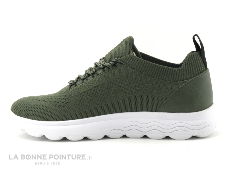 Ces sneakers Homme Geox Spherica sont en maille vert kaki, avec le contrefort en simili cuir kaki.