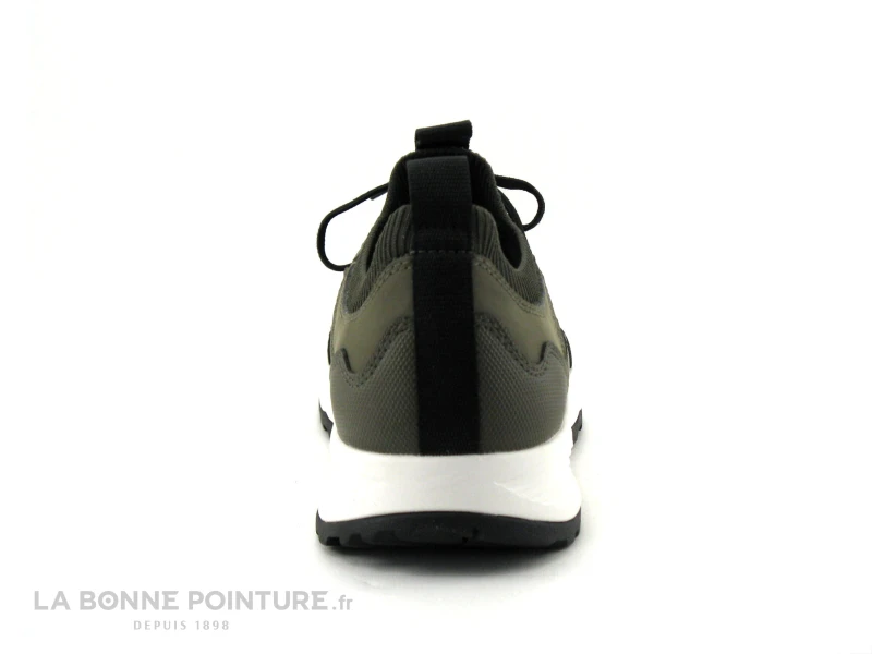 Cette basket sans lacet Homme Geox Terrestre est en maille et matières synthétiques résistantes vert kaki et noires.