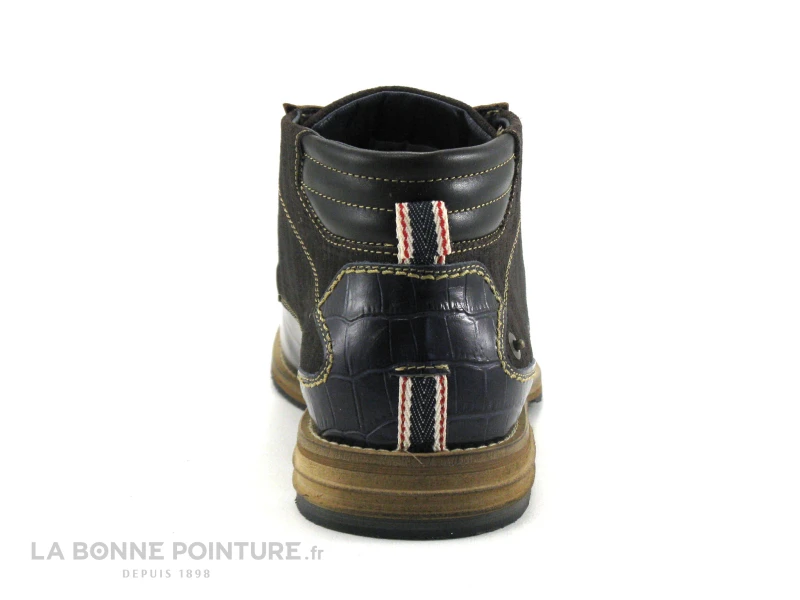L’arrière des bottines Homme Jooze J5345 X187 est en cuir bleu marine aspect croco, avec une petite languette tricolore.