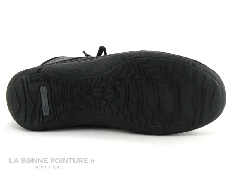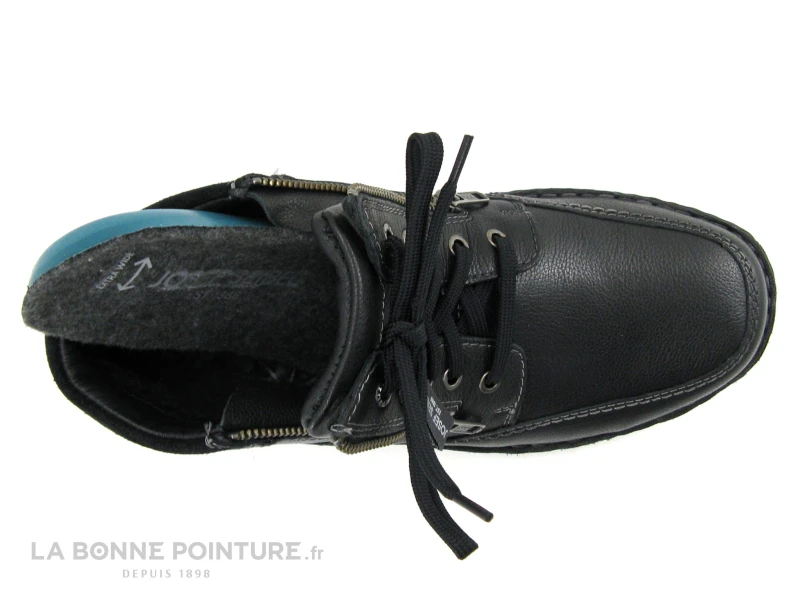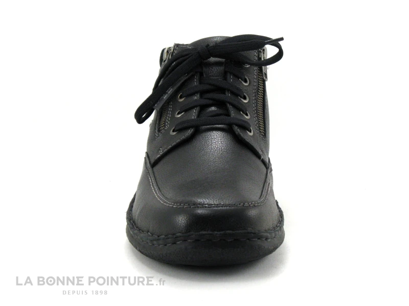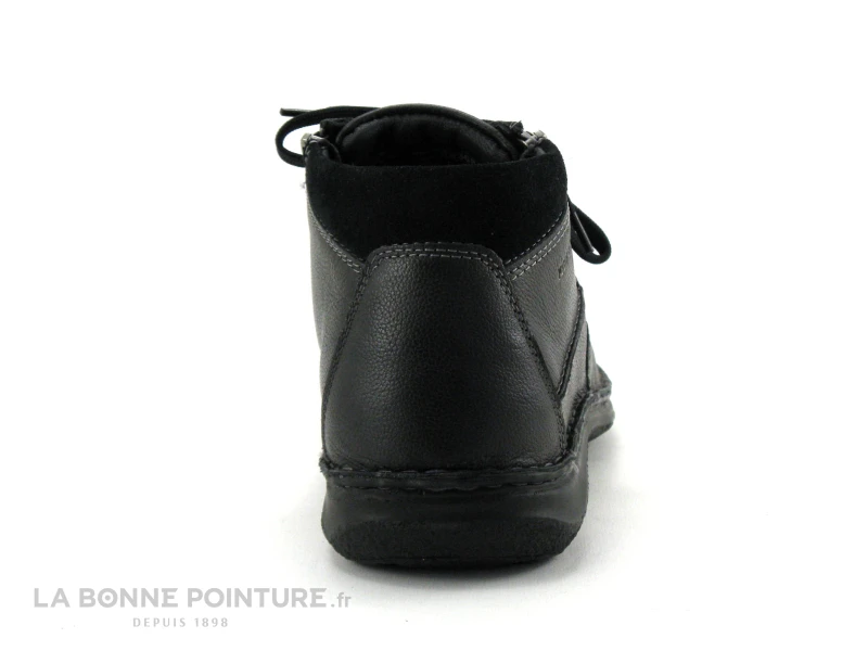 Cette chaussure montante Homme Josef Seibel adaptée pieds larges est en cuir noir aspect grainé, avec une partie en nubuck noir autour de la cheville.