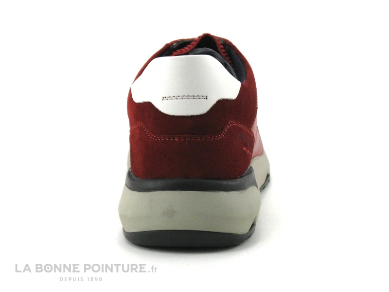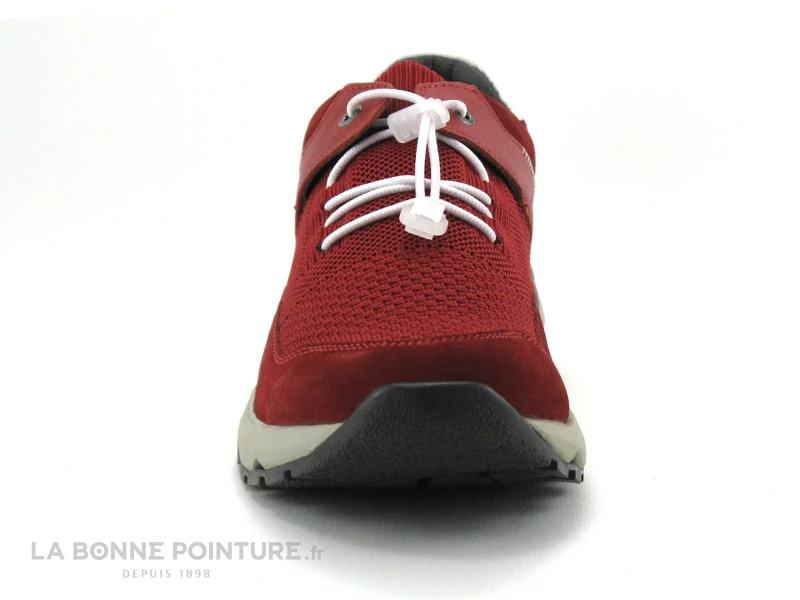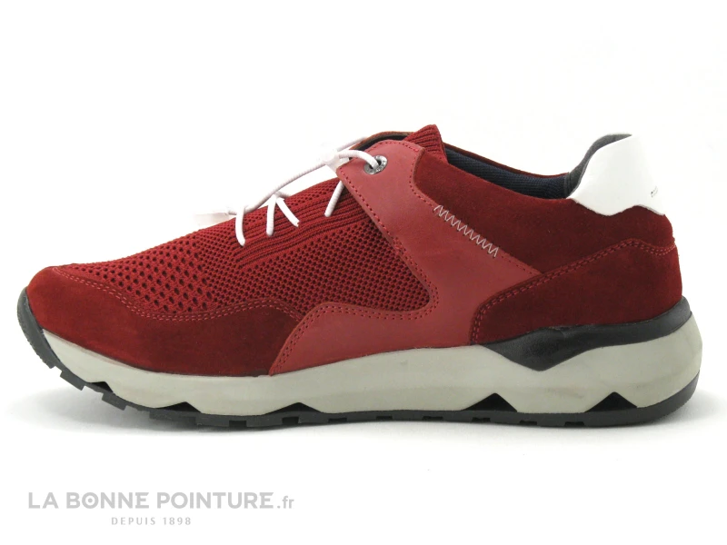 Cette basket homme Josef Seibel Jeremiah mĂ©lange cuir velours, cuir lisse et textile maille rouge, avec une partie en cuir blanc Ă l’arrière.