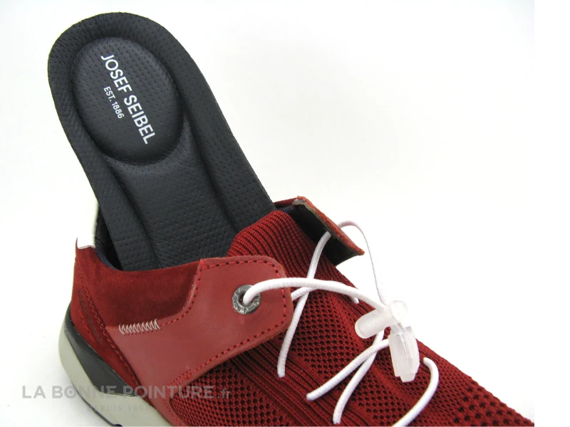 Cette basket Josef Seibel Jeremiah s’enfile comme un chausson et se resserre avec le lacet Ă©lastique blanc Ă serrage rapide.