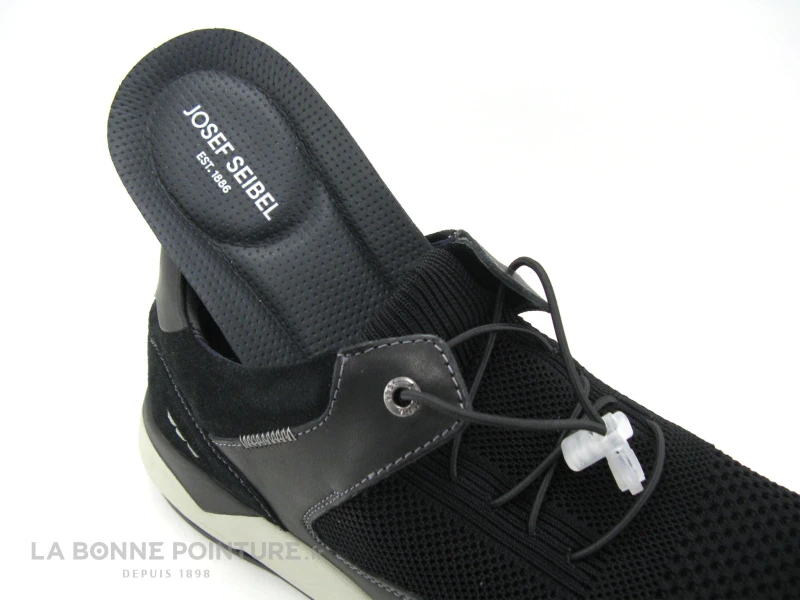 Facile Ă enfiler comme un chausson, la basket noire Josef Seibel Jeremiah se resserre avec le lacet auto-bloquant noir.
