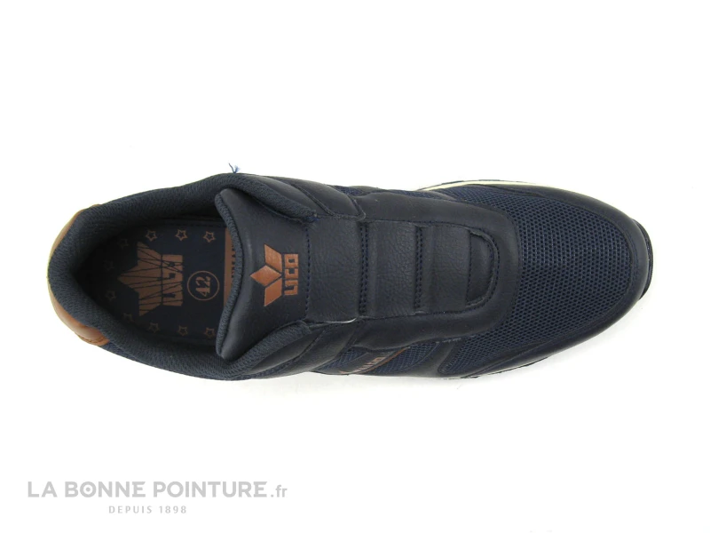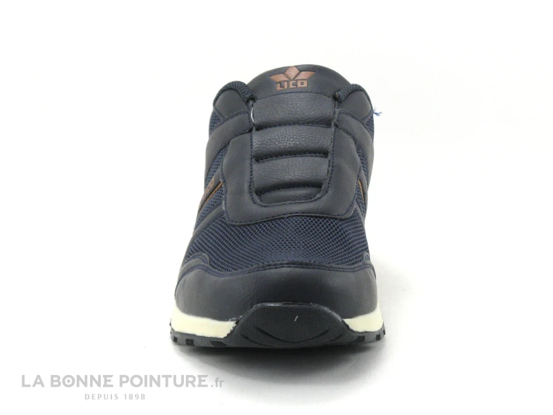Cette basket mode Homme Lico Marek mĂ©lange textile et simili cuir bleu marine, avec un peu de marron camel Ă l’arrière.