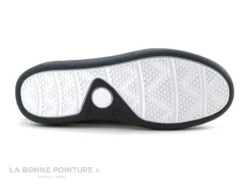 La semelle de marche est souple, blanche et bleu marine.