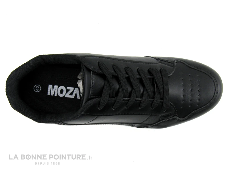Cette basket de ville Homme pas chère Moza-X B850830 est en simili cuir noir, avec une partie blanche Ă l’arrière.