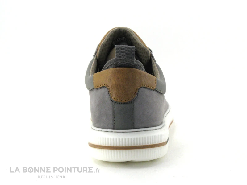 Cette basket de ville Homme Skechers StreetWear est en cuir veloutĂ© gris, avec un peu de marron cognac sur la languette et Ă l’arrière.