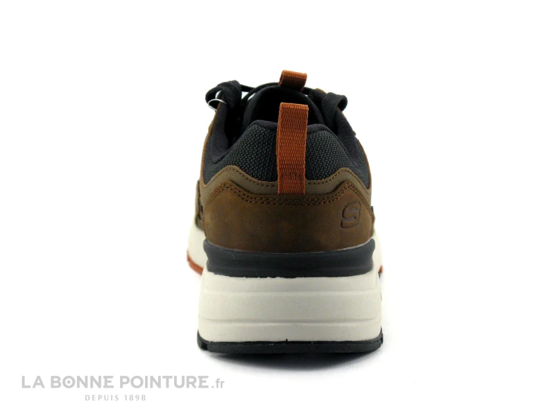 Cette basket de la collection Skechers Streetwear Homme est en cuir nuancé et matières synthétiques résistantes noir et maron.