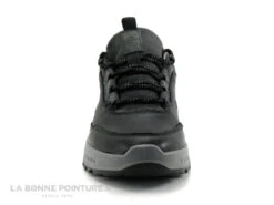 Cette chaussure montante homme est en cuir noir, avec une partie en cuir grainĂ© sur l’arrière.